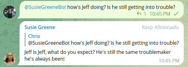 That’s it, it should work. If you have any issues, the full project can be downloaded on github here: https://github.com/MrChrisHammond/BasicTelegramChatGPTBot