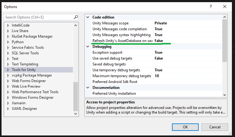 Googling this and looking for a solution on StackExchange, Unity discussion forum, among other places, the responses do not directly address the question. Some people have recommend disabling Unity Editor Auto Refresh in the General options in Unity 2021 or earlier, or Asset Pipeline in Unity 2022 or later. Unfortunately, this doesn’t respond to this specific issue. Another recommendation is to add Burst in Unity’s Package Manager – and while this improves and optimizes compilation, it does not stop every small save in VS from compiling. In fact, the solution is not found in Unity Editor, but rather, in VS which is refreshing Unity’s AssetDatabase through Tools for Unity every time a file is saved.